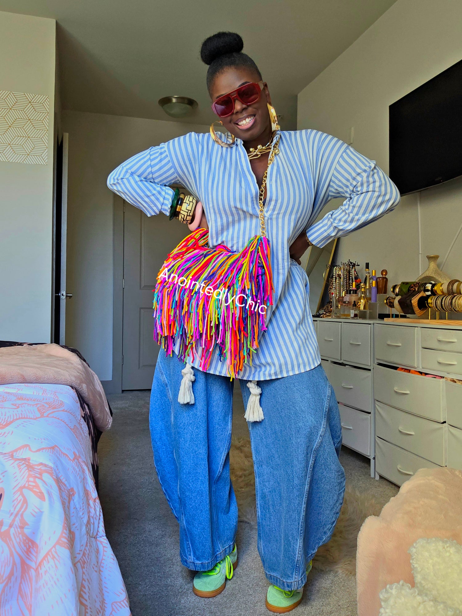 Multicolor fringe crossbody bag