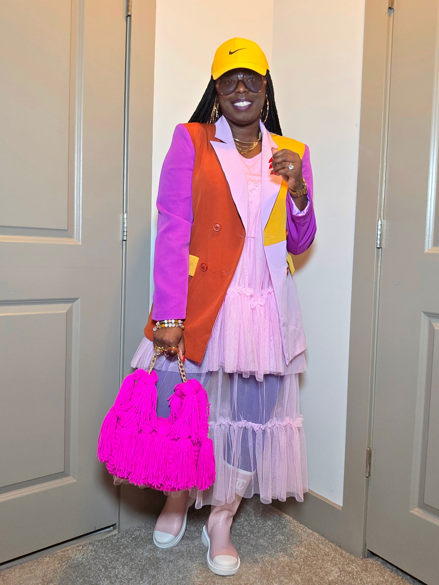 Fuchsia hand tote bag with tassels